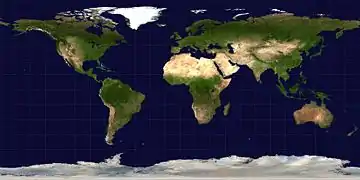 Uma projeção cilíndrica equidistante da Terra; o paralelo padrão é o equador.
