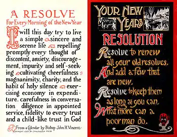 - Este artigo foi inicialmente traduzido, total ou parcialmente, do artigo da Wikipédia em inglês cujo título é «New Year's resolution», especificamente desta versão.