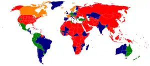 A situação legal da prostituição varia consideravelmente de país para país (e, por vezes, de região para região dentro do mesmo país), indo desde ser considerada um crime grave ou menor, até ser vista como uma profissão regulada ou não regulada. Alguns enxergam a prostituição como uma forma de exploração ou de violência contra mulheres[8] e crianças, contribuindo para o fornecimento constante de vítimas para a trata de pessoas.[9][10] Em alguns países, a prostituição e a operação de bordéis são legais e regulamentados (por exemplo, Países Baixos ou Alemanha). O grau de regulamentação varia amplamente de um país para outro. A maioria desses países permite bordéis, pelo menos teoricamente, pois são considerados menos problemáticos que a prostituição de rua. Em outros, a prostituição não é ilegal, mas o proxenetismo é. Alguns países nórdicos (Suécia, Noruega e Islândia) adotaram um modelo em que solicitar ou pagar por serviços sexuais é um crime (ou seja, o cliente é quem comete o delito), mas vender sexo não é.