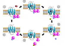 Quando um agonista liga-se a um GPCR (receptor acoplado à proteína G), ocorre uma alteração conformacional no receptor que possibilita o acoplamento ao heterotrímero da proteína G. Essa alteração na conformação faz com que o fator de troca de nucleotídeos de guanina (GEF) induza a troca de GDP por GTP na subunidade α. A ligação com o GTP ativa a subunidade α e faz com que ela libere o dímero βγ e o receptor, deste modo, a subunidade α ligada ao GTP e o heterodímero βγ transformam-se em moléculas sinalizadoras ativas que iniciam cascatas de sinalização intracelular ativando efetores.