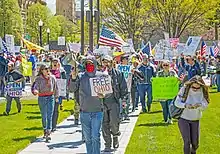 ![]() Protesto contra a quarentena em Ohio, em 20 de abril de 2020 | |||||||