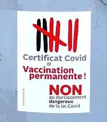 Há protestos e manifestações em todo o mundo contra respostas à pandemia de COVID-19 em andamento por órgãos governamentais. Esses protestos são semelhantes aos protestos da Liga Anti-Máscara de São Francisco, durante a pandemia de 1918. Esses protestos são separados dos vários ataques que também ocorreram.