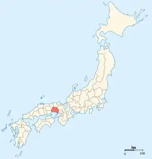 Mapa das províncias japonesas (1868) com a província de Harima em destaque