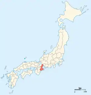 Mapa das províncias japonesas (1868) cm a província de Ise em destaque.