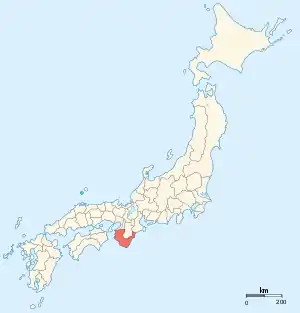 Mapa das províncias japonesas (1868) com a província de Kii em destaque