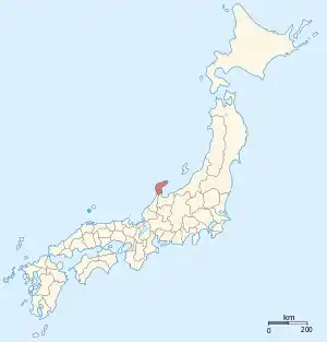 Mapa das províncias japonesas (1868) com a província de Noto em destaque
