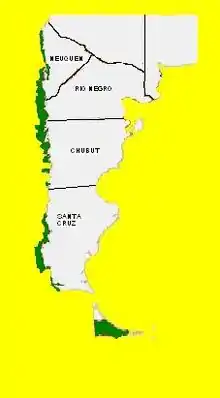 Área que cubren los Bosques andino patagónicos en Argentina.