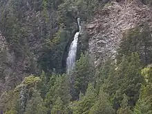 Cascada de la Virgen, provincia de Río Negro, Argentina, bosque de ciprés de la cordillera, Provincia fitogeográfica Subantártica.