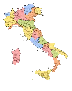 Lista das Províncias da Itália agrupadas em 20 Regiões
