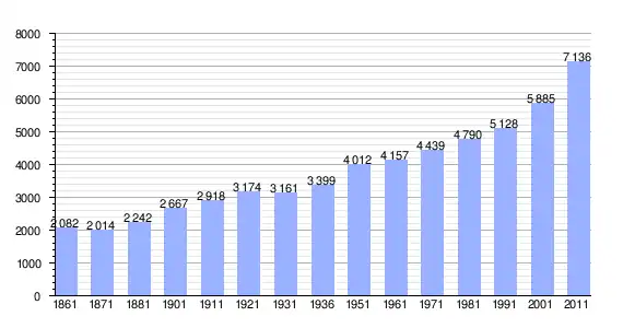 | Variação demográfica do município entre 1861 e 2011[3] |