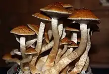 Entre os Basídiomicetos (classe de fungos com estrutura características para dispersão de esporos) encontram-se várias espécies com Psilocibina os mais conhecidos e utilizados pelas populações americanas fazem parte dos gêneros: Psilocybe, Panaeolus e Conocybe, atualmente reunidos na ordem Agaricales e família Strophariaceae em sua maioria, principalmente o conhecido "golden top" Stropharia cubensis quando classificado como um gênero (Stropharia) integrante antiga ordem Strophariaceae (atualmente Agaricales).[14][15]