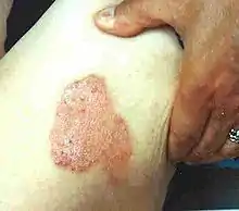 | Tratamento | Pomadas de corticosteroides, pomadas de vitamina D3, luz ultravioleta, medicamentos imunossupressores como o metotrexato[4] |