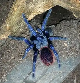 Esta Aranha é popular entre coletores de tarântulas para seu cor brilhante e iridescência única, levando a estar criando como um Animal de Estimação.