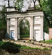 - Portão romano construído em 1829 como uma ruína permanente, modelado no Arco de Tito em Roma,