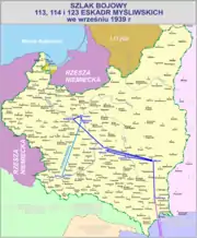 Foi o elemento de maior sucesso da Força Aérea Polonesa durante a Guerra Defensiva. Em 1º de setembro, enquanto defendia Varsóvia, derrubou 16 aviões alemães, com a perda de 10 de seus próprios combatentes. Acredita-se que derrubou 42 aviões alemães nos primeiros 6 dias da guerra. Naquela época, no entanto, havia perdido 38 de seus 54 caças. Em 6 de setembro, foi transferido do teatro de Varsóvia para Lublin (Zaloga, p.51-52).