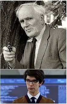 ![]() Em cima: "Q", na clássica figura de Desmond Llewelyn Embaixo: na versão mais moderna de Ben Whishaw. | |