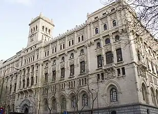 Trata-se de um edifício neogótico situado no Passeio do Prado de Madri. Em 1915 o Palácio de Godoy, sede central do Ministério de Marinha, encontrava-se num estado ruinoso. Gabino Bugallal, Ministro de Fazenda, propõe ao rei Alfonso XIII a construção de uma nova sede.[3]