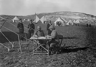 ![]() Djemal Paxá e Fuad Bei num posto de comando do sul da Palestina em abril de 1917 | |