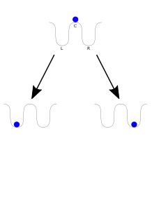 Um exemplo com simetria dupla seria um átomo que tenha dois estados de vácuo. Ao se ocupar qualquer um desses dois estados, há uma quebra dessa simetria dupla. Esse ato de selecionar um dos estados conforme o sistema atinge uma energia mais baixa é a quebra espontânea de simetria. Quando isso ocorre, o átomo não é mais simétrico (reflexivamente simétrico), tendo colapsado para um estado de energia inferior.