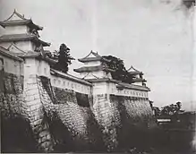 A queda do Castelo de Osaka foi uma ocorrência de extrema importância, visto ter sido a base de poder de Tokugawa Bakufu na região oeste do Japão. Também adquiriu importância histórica, tendo sido o local do cerco de Osaka, a batalha decisiva que estabeleceu o poder do Tokugawa durante os dois séculos anteriores.[2] The Castle of Osaka was burnt and reduced to ruins by the new government, and was later used as a ground for military barracks.[2] O Castelo de Osaka foi queimado e reduzido a ruínas pelo novo governo, e mais tarde foi utilizado como base para quartéis militares.