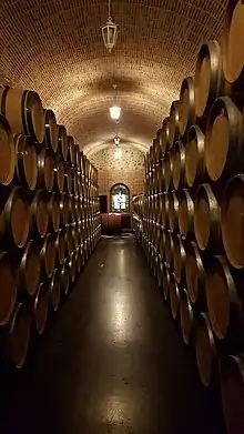 Barris de vinho na adega subterrânea da Bodegas Casajús, em Quintana del Pidio.