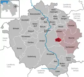 | Localização de Rätzlingen no distrito de Uelzen | |