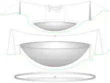 - Sistema de dois espelhos: Um setor do anel direciona as ondas para o espelho cilíndrico secundário que as direciona para os receptores.