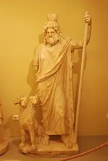 Este deus é produto do sincretismo das mitologias egípcia e grega. Serápis integra as divindades Osíris e Ápis egípcias, cujo culto associava-se com os deuses gregos Zeus e Hades. Ptolomeu Sóter tornou-o senhor tutor de Alexandria numa magistral operação política, conseguindo que tanto os egípcios mais tradicionalistas como a população grega relativamente nova aceitaram a este deus representado como um homem com barba, sedente e com uma espécie de cesto na cabeça, símbolo da fertilidade da terra, pois acredita-se estar cheio de sementes.
