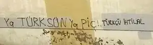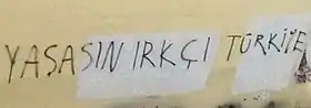 Em fevereiro de 2015, grafites foram descobertos perto da parede de uma igreja armênia no distrito de Kadıköy, em Istambul, dizendo: "Você é turco ou bastardo" e "Vocês são todos armênios, todos bastardos".[95][96][97] Alega-se que o grafite foi realizado pela organização de membros de uma manifestação intitulada "Manifestações condenando o genocídio de Khojali e o terror armênio". A Associação de Direitos Humanos da Turquia solicitou ao governo local de Istambul a denominação de "pretexto para incitar o ódio étnico contra armênios na Turquia".[98] No mesmo mês, faixas comemorativas do genocídio armênio foram vistas em várias cidades da Turquia. Eles declararam: "Celebramos o centésimo aniversário de nosso país sendo purificado dos armênios. Estamos orgulhosos de nossos antepassados gloriosos ". (Yurdumuzun Ermenilerden temizlenişinin 100. yıldönümü kutlu olsun. Şanlı atalarımızla gurur duyuyoruz. ) [99][100]