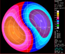 - Fase Diferencial (θdp) – A fase diferencial é uma comparação da diferença de fase retornada entre os pulsos horizontal e vertical. Essa mudança na fase é causada por uma diferença no número de ciclos de onda (ou comprimentos de onda) ao longo da propagação das ondas polarizadas horizontalmente e verticalmente. Isso não deve ser confundido com o desvio de frequência Doppler, que é causado pelo movimento da nuvem e partículas de precipitação. Ao contrário da refletividade diferencial, do coeficiente de correlação e a razão de polarização linear, que são todos dependentes da potência refletida, a fase diferencial é um efeito da propagação. É um bom estimador da razão de chuva e não é afetado pela atenuação. A derivada de intervalo da fase diferencial (fase diferencial específica, Kdp) pode ser usada para localizar áreas de forte precipitação/atenuação.