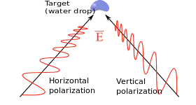 Gotas d’água caindo tendem a ter um eixo maior horizontal devido ao coeficiente de resistência aerodinâmica do ar enquanto caem (gotas de água). Isso faz com que o molécula dipolo de água seja orientado naquela direção; então, feixes de radar são geralmente polarizados horizontalmente, de forma a receber o máximo de reflexão do sinal.
