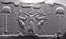 Na religião assíria, a palmeira é uma das árvores identificadas como a Árvore Sagrada[6] conectando o céu, representado pela coroa da árvore e a terra, a base do tronco. Relevos do século IX a.C. mostram gênios alados segurando folhas de palmeira na presença da Árvore Sagrada.[7] Está associado à deusa Istar e é encontrado no Porta de Istar. Na antiga Mesopotâmia, a tamareira pode ter representado a fertilidade em humanos. Acreditava-se que a deusa mesopotâmica Inana, que tinha um papel no ritual do casamento sagrado, tornava os encontros mais abundantes.[8] As hastes das palmeiras representavam vida longa para os antigos egípcios, e o deus Huh era frequentemente mostrado segurando uma haste de palma em uma ou ambas as mãos. A palma era levada em procissões funerárias egípcias para representar a vida eterna.[9] O Reino de Nri (ibo) usou o omu, uma folha de palmeira tenra, para sacralizar e restringir.[10] Alguns argumentam que a palma no poema parta Drakht-e Asurig serve como uma referência à fé babilônica.[11]