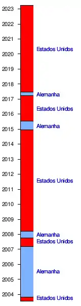 | 6 (2003, 2004, 2005, 2006, 2007 e 2014) | 13 (2008, 2009, 2010, 2011, 2012, 2013, 2015, 2016, 2017, 2018, 2019, 2020 e 2022) | 1 (2021) | |