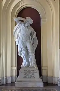 Raposo Tavares é uma das duas esculturas monumentais que retratam bandeirantes feitas em blocos de mármore de Carrara e que ornamentam o hall de entrada do Museu Paulista, esculpidas pelo artista plástico Luigi Brizzolara por volta do ano de 1920, no contexto das reformas promovidas por Afonso d'Escragnolle Taunay à época das comemorações paulistas do primeiro centenário da Independência do Brasil. Do lado oposto do hall de entrada, encontra-se a escultura de Fernão Dias Paes Leme; subindo as escadas estão dispostas mais seis estátuas menores de bronze retratando figuras simbólicas do bandeirismo de São Paulo.[1]