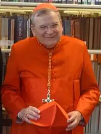 Raymond Leo Cardeal Burke (Richland Center, 30 de junho de 1948) é um bispo, cardeal e patrono da Ordem Soberana e Militar de Malta estadunidense, com o título de Cardeal-diácono.[1] Nasceu na cidade de Richland Center no estado norte-americano de Wisconsin. Estudou Filosofia no The Catholic University of America e Teologia na Pontifícia Universidade Gregoriana de Roma, onde também cursou seu doutoramento em Direito Canônico. Foi Prefeito do Supremo Tribunal da Assinatura Apostólica no Vaticano (2008-2014) e é atualmente patrono da Ordem Soberana e Militar de Malta.[2]