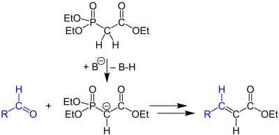 Em contraste com os iletos de fosfônio usados na reação de Wittig, os carbânions estabilizados com fosfonato são mais nucleofílicos, mas menos básicos. Da mesma forma, os carbânions estabilizados com fosfonato podem ser alquilados. Ao contrário dos iletos de fosfônio, o subproduto do sal de dialquilfosfato é facilmente removido por extração aquosa.