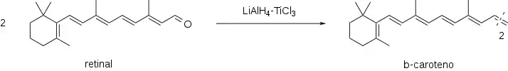 - John E. McMurry; Michael P. Fleming (1974). «New method for the reductive coupling of carbonyls to olefins. Synthesis of β-carotene». J. Am. Chem. Soc. 96 (14): 4708–4709. PMID 4850242. doi:10.1021/ja00821a076