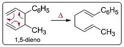 Duas reações muito conhecidas que são rearranjos sigmatrópicos são os rearranjos de Cope e de Claisen. O rearranjo de Cope é considerado um rearranjo do tipo [3,3] do 1,5-dieno (Esquema 2). Já o rearranjo de Claisen também é do tipo [3,3], porém é de um alil-vinil-éter (Esquema 3).[2]