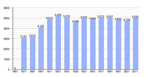 | Variação demográfica do município entre 1861 e 2011[3] |