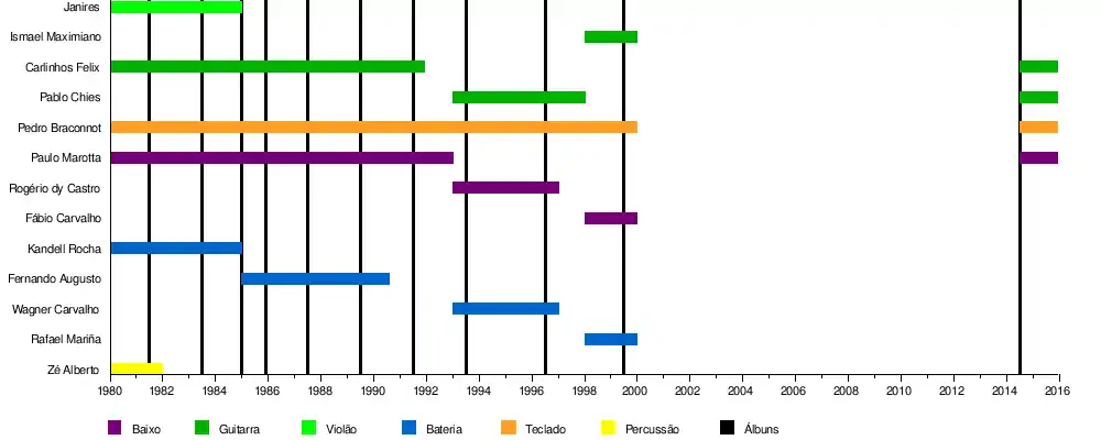 | Ex-integrantes | Zé Alberto Janires Magalhães Manso Kandell Rocha Fernando Augusto Murilo Kardia Wagner Carvalho Rogério dy Castro Rafael Fariña Ismael Maximiano Fábio Carvalho Marcelo Freitas |