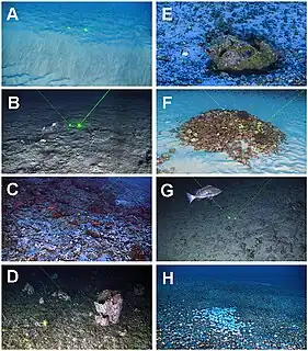 ![]() Distribuição aproximada dos recifes, baseado no artigo original da descoberta[1] Distribuição aproximada dos recifes, baseado no artigo original da descoberta[1]