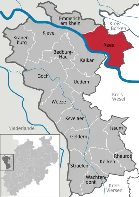 ![]() Rees Mapa da Alemanha, posição de Rees acentuada |
