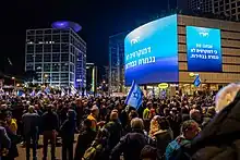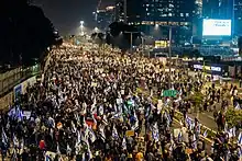Em 14 de janeiro de 2023, cerca de 80 mil pessoas se manifestaram em Tel Aviv e outras milhares se manifestaram em Jerusalém, Haifa e outros lugares.[45][46]