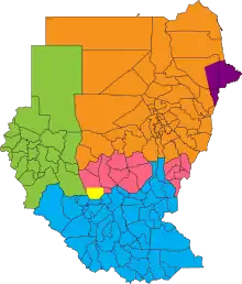 O governo autônomo tinha autoridade sobre as seguintes regiões e estados do Sudão: