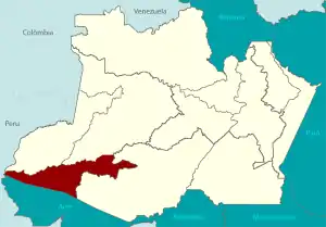 Localização da Região Imediata de Eirunepé no Amazonas.