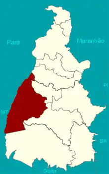Localização da região no Estado do Tocantins.