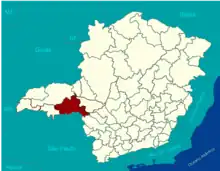 Localização da Região Geográfica Imediata de Uberaba, em Minas Gerais.