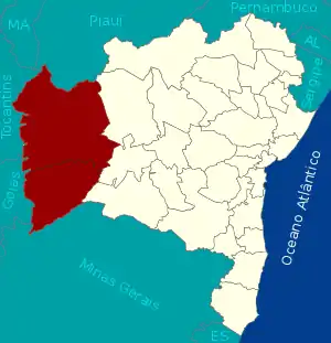 Angical Baianópolis Barreiras Brejolândia Catolândia Cotegipe Cristópolis Formosa do Rio Preto Luís Eduardo Magalhães Mansidão Riachão das Neves Santa Rita de Cássia Santana São Desidério Serra Dourada Tabocas do Brejo Velho Wanderley |