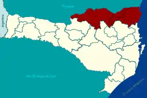 | Regiões limítrofes | Blumenau Caçador Curitiba Lages |