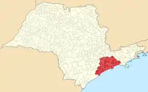 | Santos | Bertioga Cubatão Guarujá Itanhaém Itariri Mongaguá Pedro de Toledo Peruíbe Praia Grande Santos São Vicente |